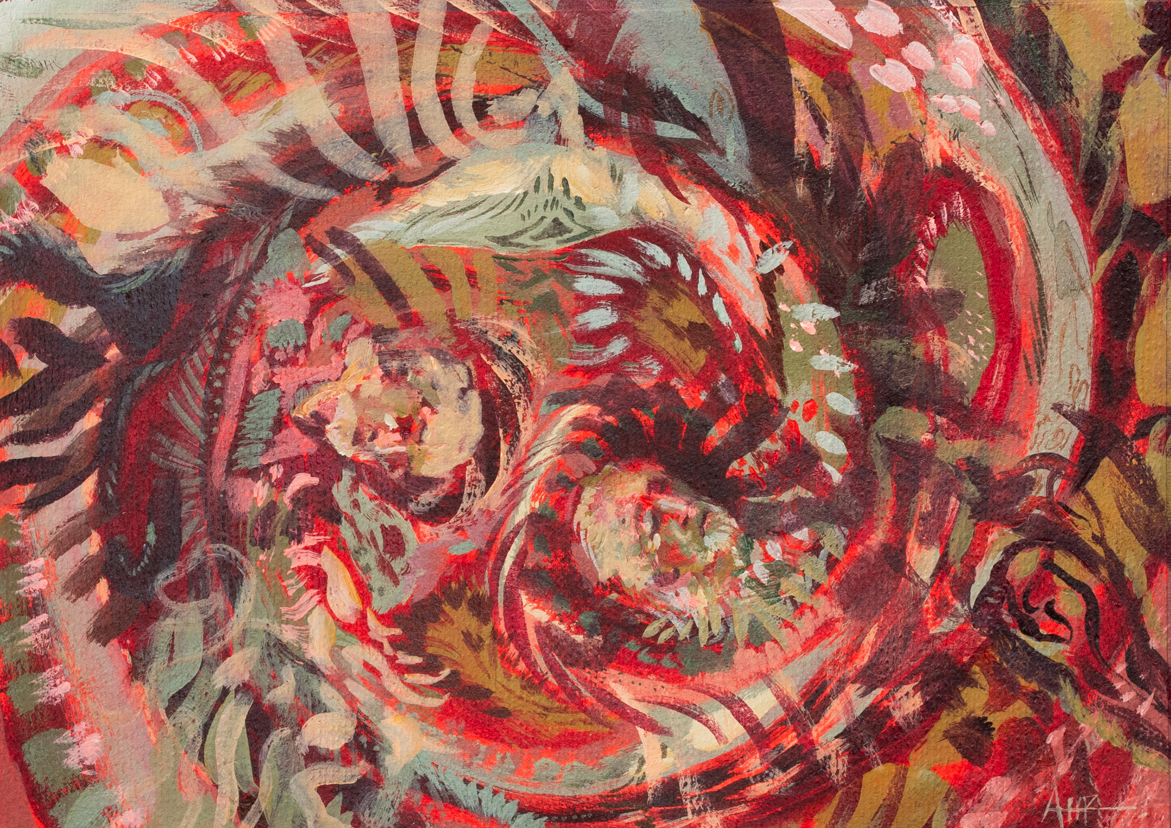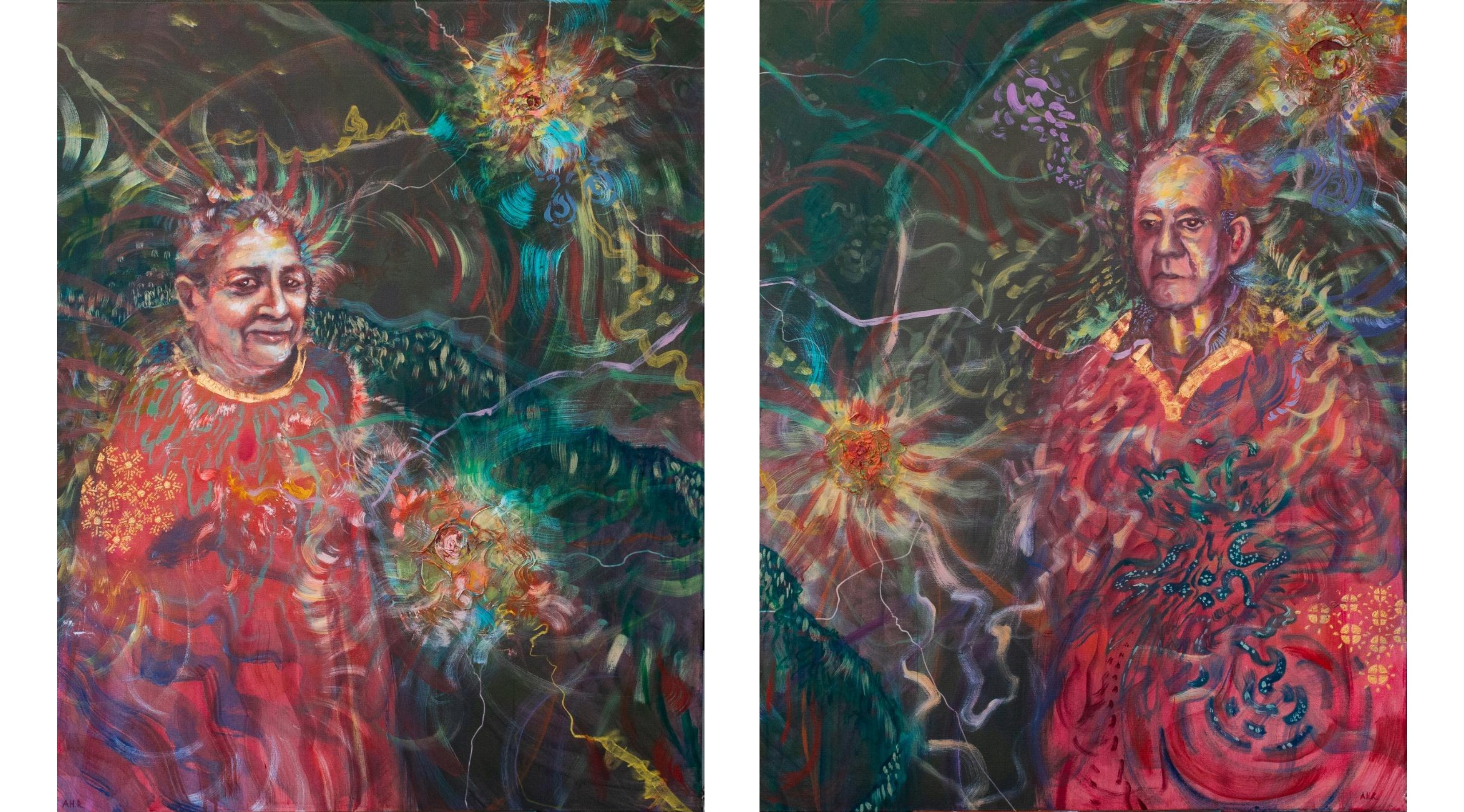 This series explores the forces that link us to our surroundings and to other beings. In each work, the lines and energies that traverse the canvas function as threads of union: between people, nature, and the cosmos.