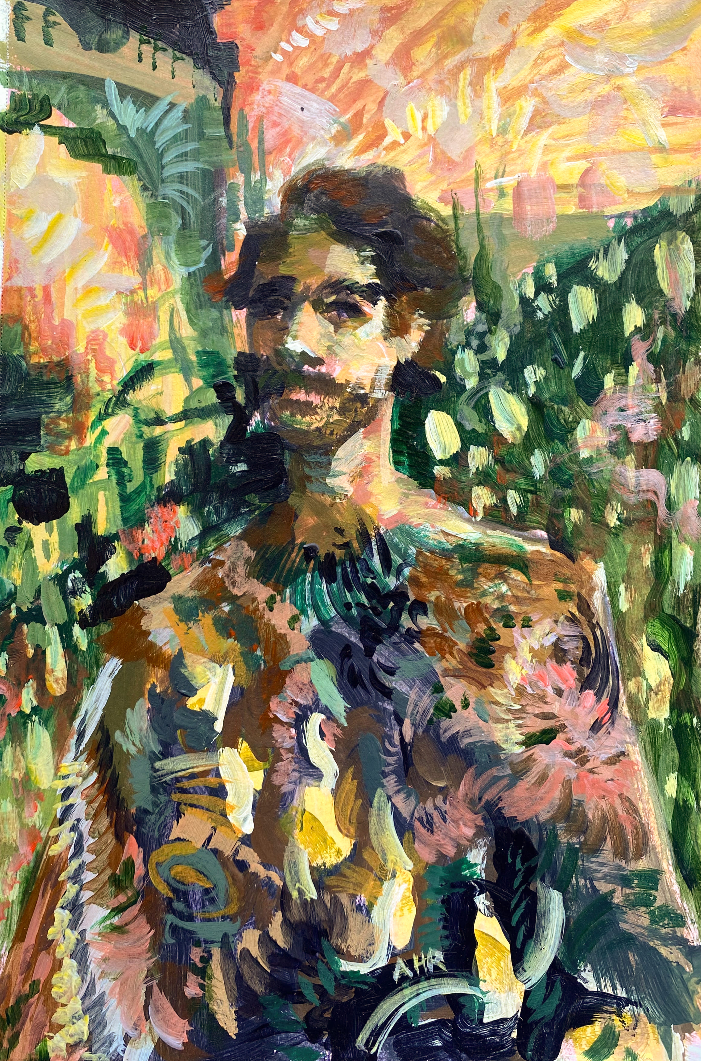 The backgrounds act as symbolic territories, where memory and transformation become visible. Here, the human figure appears in transit: forms that merge with signs, evoking both individual roots and a sense of collective belonging.